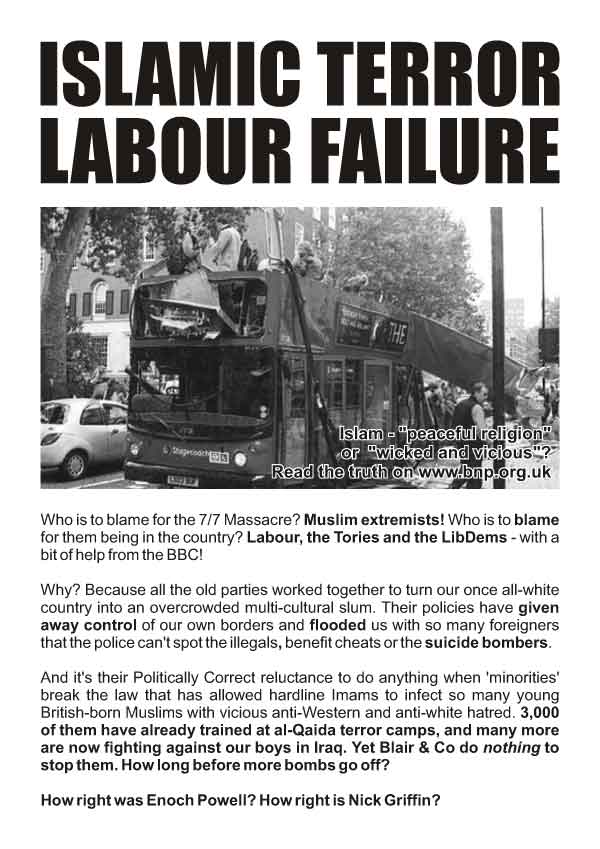 the BNP leaflet Islamic Terror-Labour Failure;